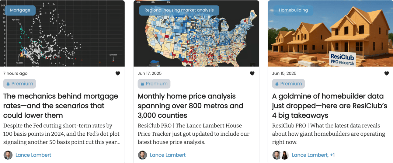Over the past week, ResiClub PRO members (paid tier) got these 3 additional housing research articles: