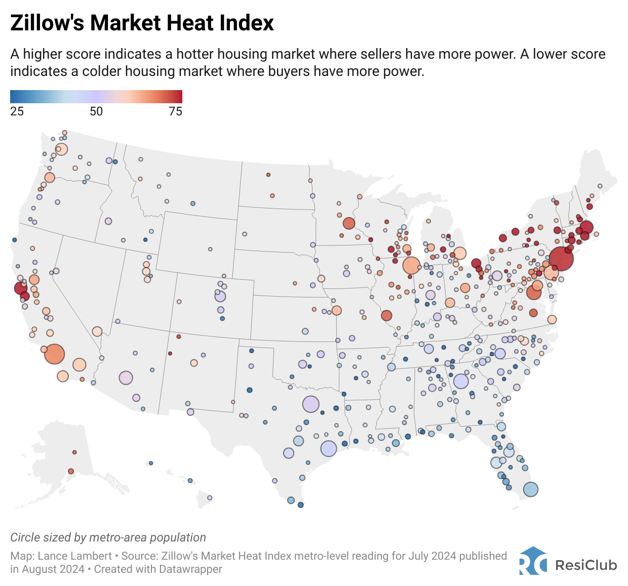For today’s piece, ResiClub visualized Zillow’s Market Heat Index.