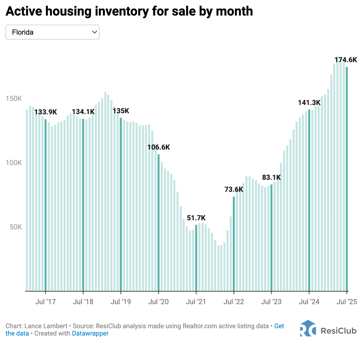 If you’d like to further examine the monthly state inventory figures, use the interactive below. [To better understand ongoing softness and weakness across Florida, read this ResiClub PRO report].