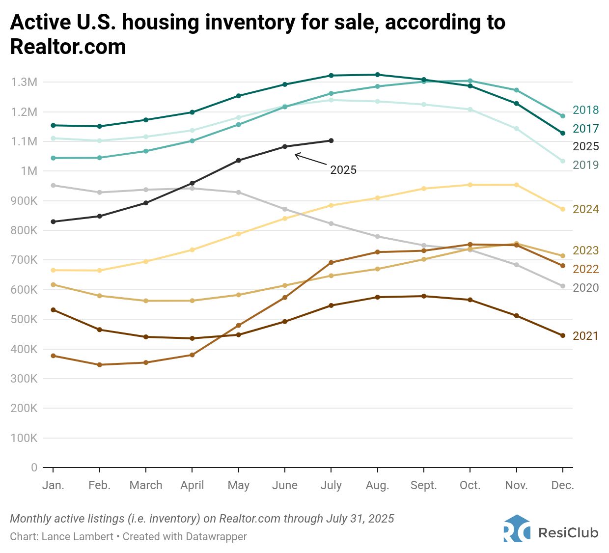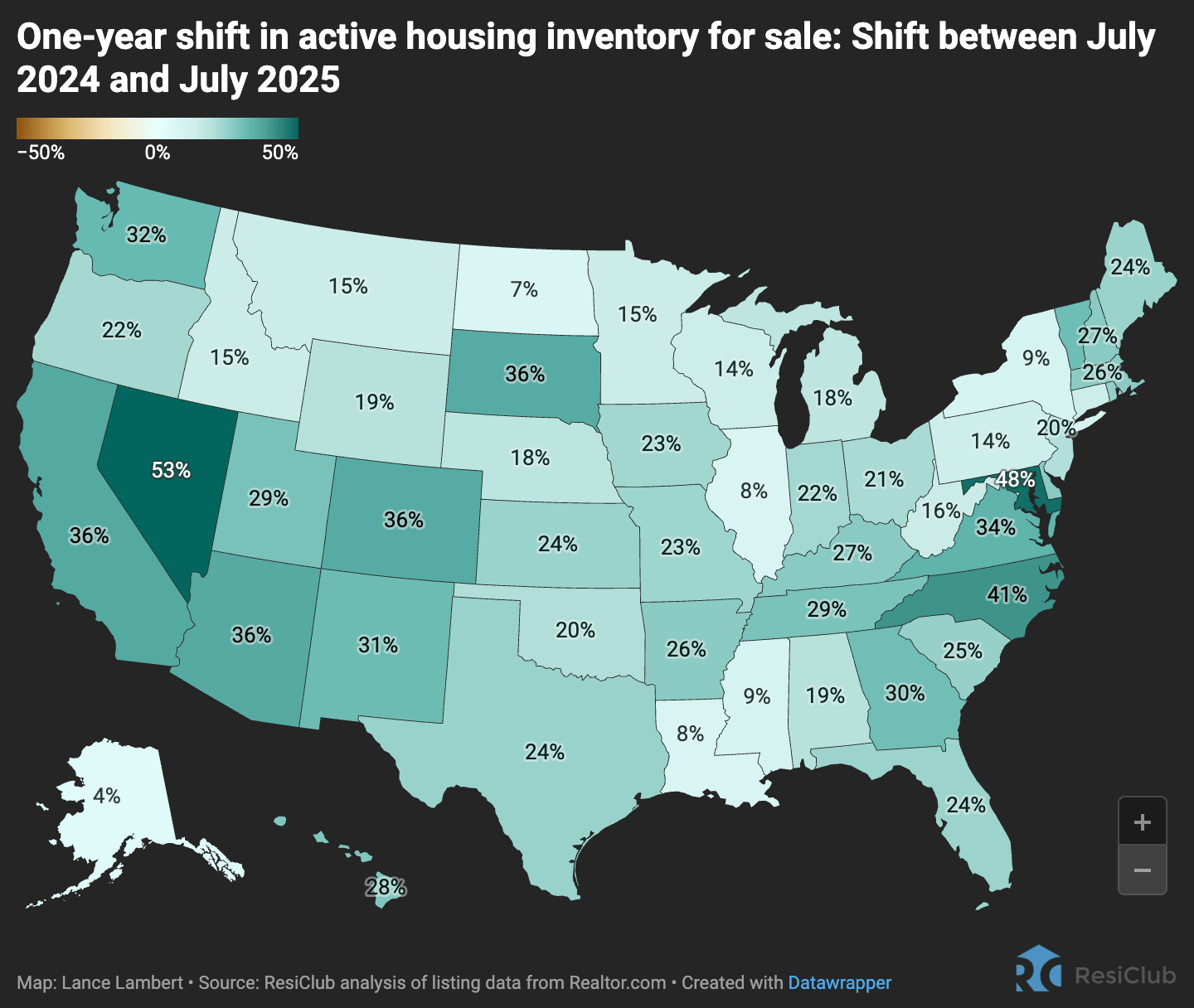 National active listings are on the rise (+25% between July 2024 and July 2025). This indicates that homebuyers have gained some leverage in many parts of the country over the past year. Some sellers markets have turned into balanced markets, and more balanced markets have turned into buyers markets.