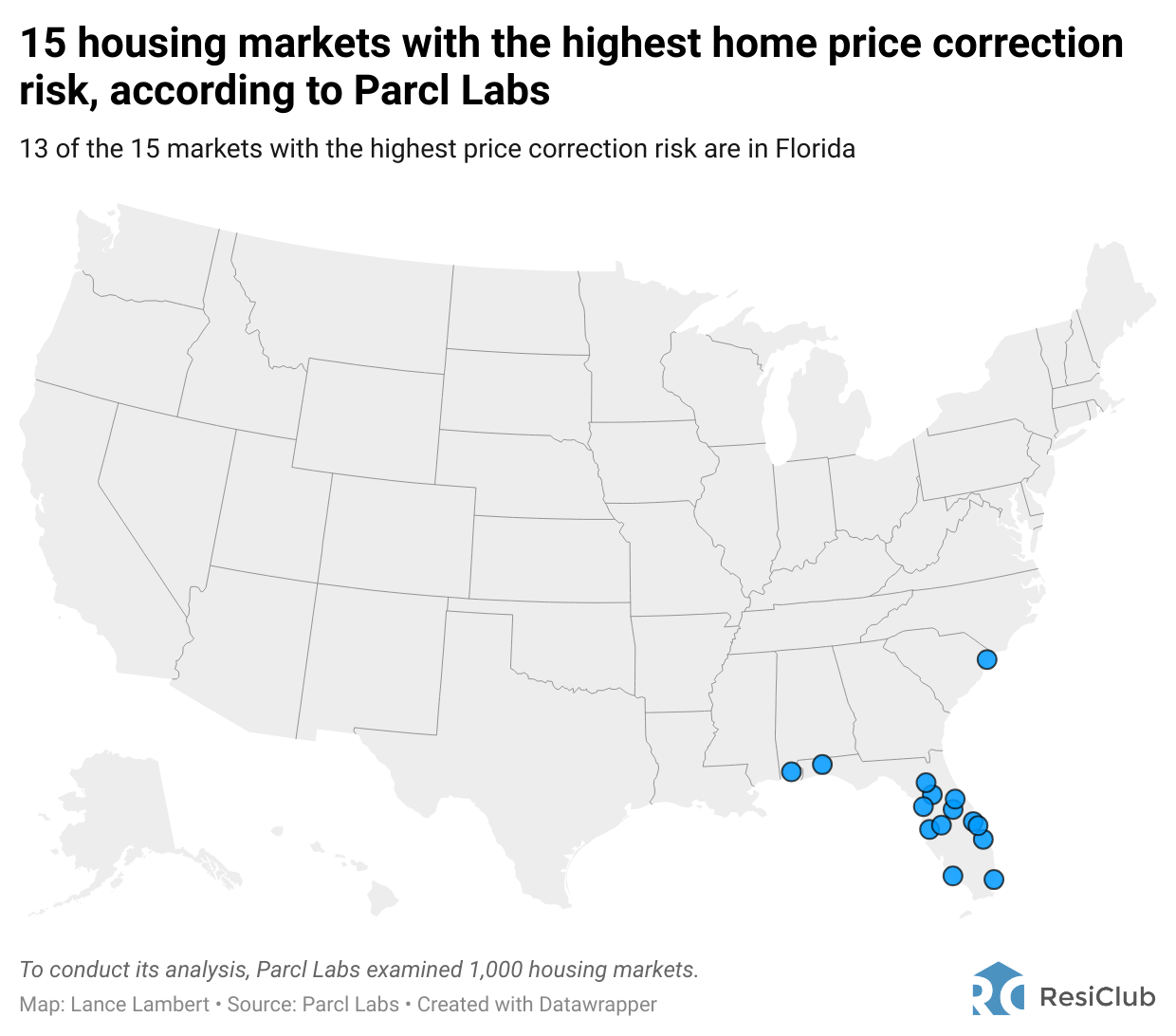 The most notable thing is that 13 of the 15 housing markets Parcl Labs labeled as "at risk" are in Florida.
