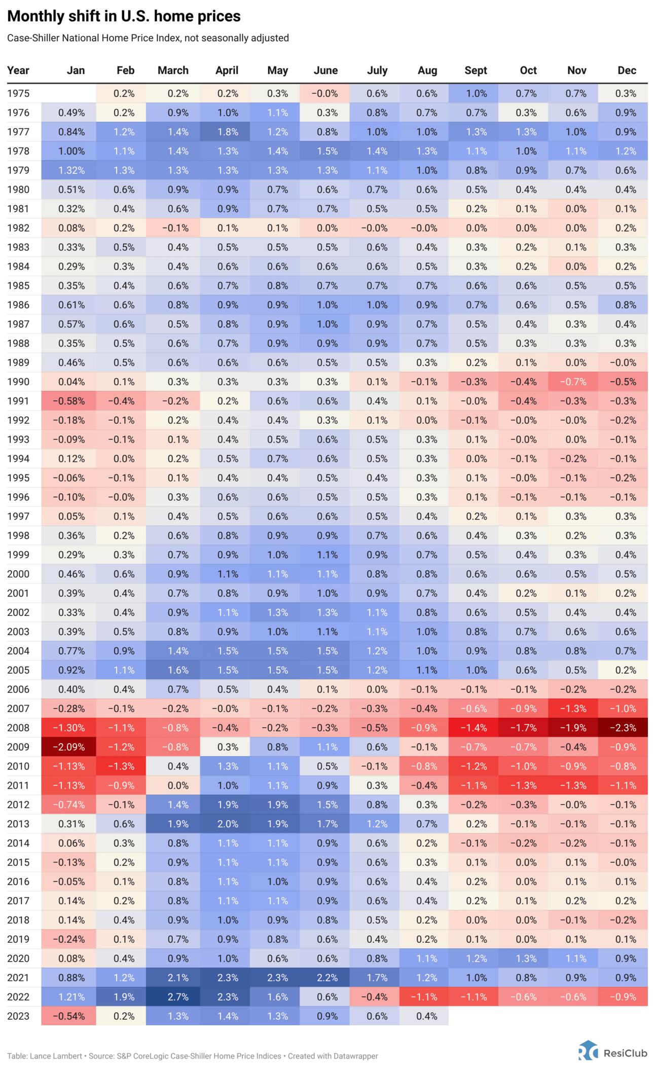 On the year, U.S. home prices are up +5.8% (or +4.0% with seasonal adjustment), and up +2.6% on a year-over-year basis. National house prices in August 2023 are +1.0% higher than in June 2022 (i.e. last year’s price peak).