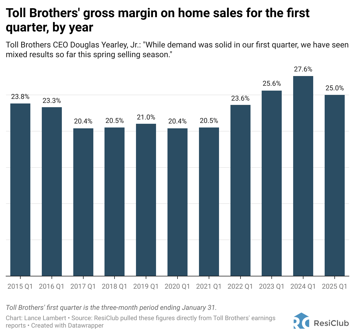 On Tuesday, giant homebuilder Toll Brothers—which is ranked No. 394 on the Fortune 500—reported profit margin compression in Q1 2025.