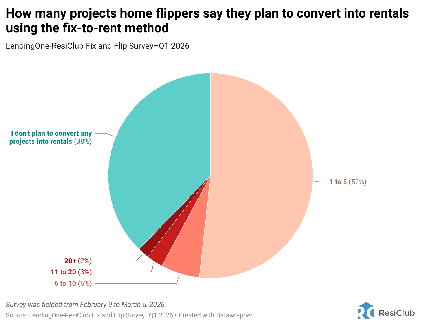 Just over half (52%) plan to convert 1 to 5 projects into rentals using the fix-to-rent method, while 38% do not plan to convert any projects.