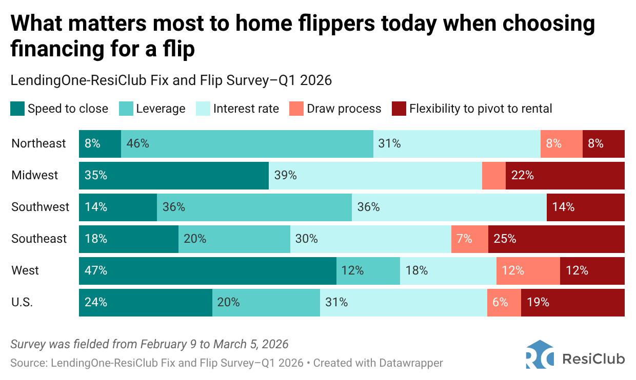 Speed to close (47%) is overwhelmingly the top consideration reported by home flippers in the West.
