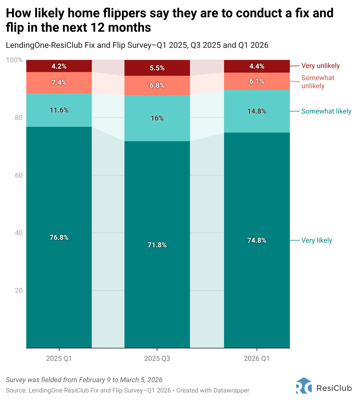 A strong majority of flippers (90%) say they are somewhat or very likely to conduct a fix and flip in the next 12 months, including 75% who say they are “very likely.”