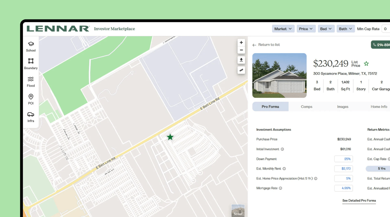 Look no further than this week Lennar launching the Lennar Investor Marketplace. The homebuilder—which has a $34 billion market capitalization—says the portal allows investors “at any level to browse curated new homes and make informed, data-driven decisions.”