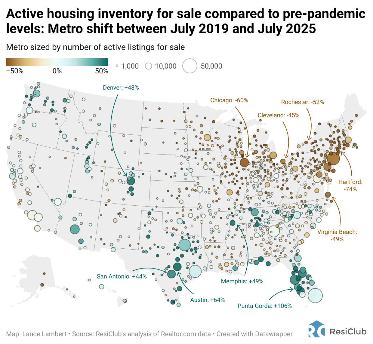 The greatest softness—and build up in both unsold resale inventory for sale and unsold completed new homes for sale—can be found in pockets of the Mountain West, Southwest, and Southeast. In particular, housing markets like Tampa, Austin, San Antonio, Nashville, Dallas, Cape Coral, and Punta Gorda.