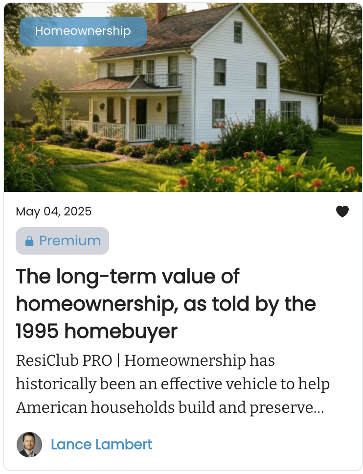 What’s the long-term value of homeownership? ResiClub PRO members can read our latest report here.