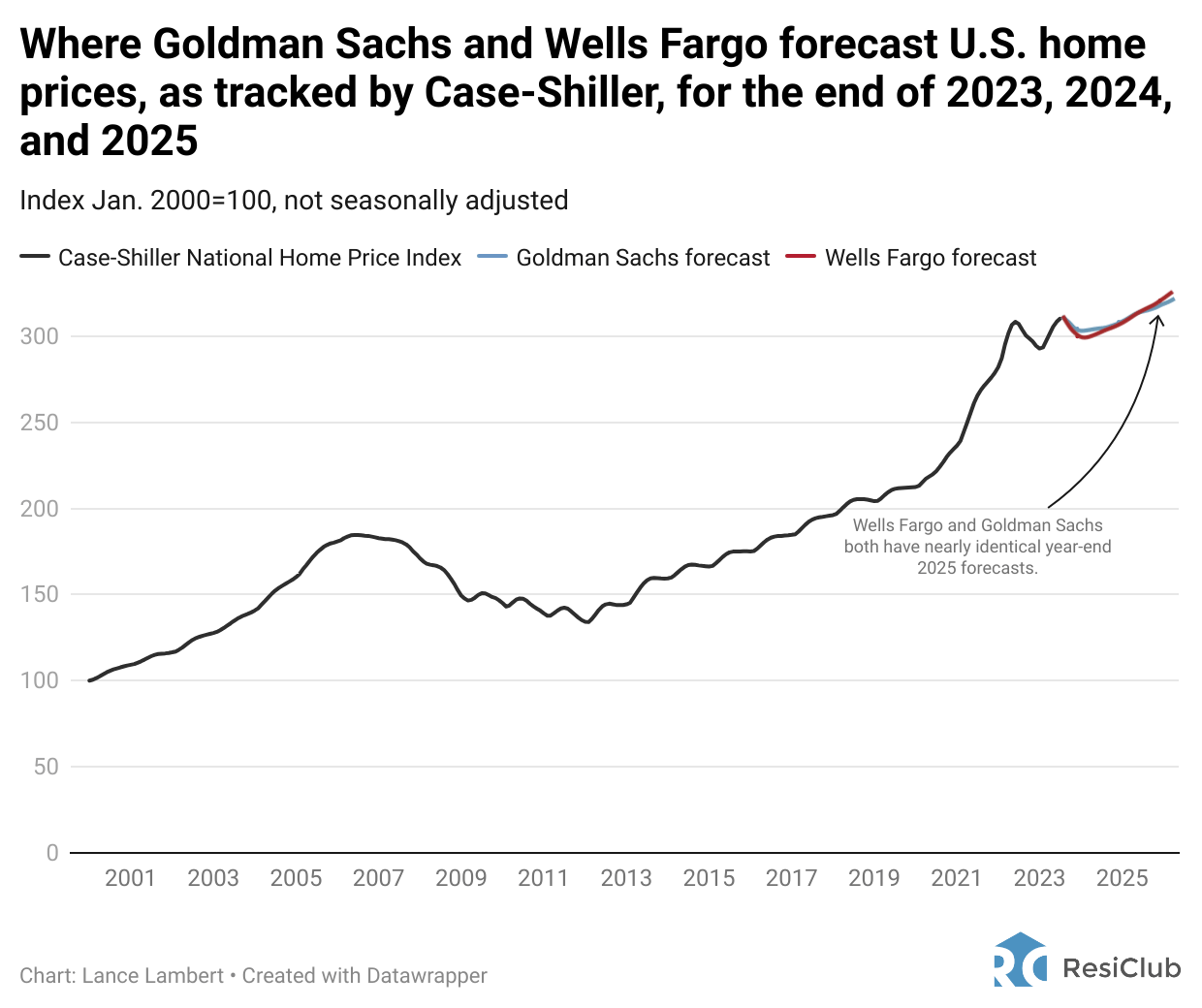 Beyond 2023, Wells Fargo expects U.S. home prices to rise +2.5% in 2024 followed by +4.4% in 2025. If Wells Fargo is right, U.S. home prices would end 2023 down -2.8% from June 2022 (i.e. the peak of home prices last year), end 2024 down -0.4% from June 2022, and end 2025 up +4.0% above June 2022.