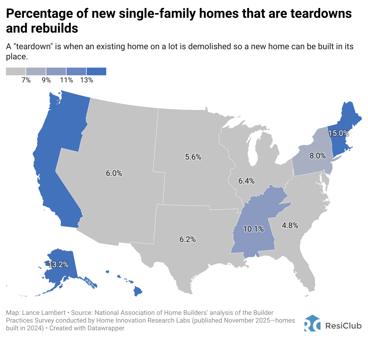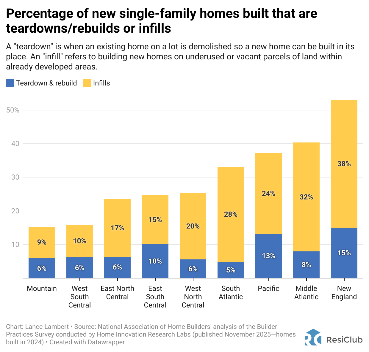 Teardowns vs. infill vs. subdivisions: New NAHB data shows stark regional housing differences