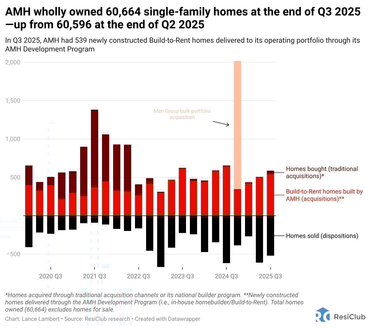In Q3 2025, AMH acquired 587 homes, with 539 coming from its in-house homebuilder—accounting for 92% of its acquisitions.