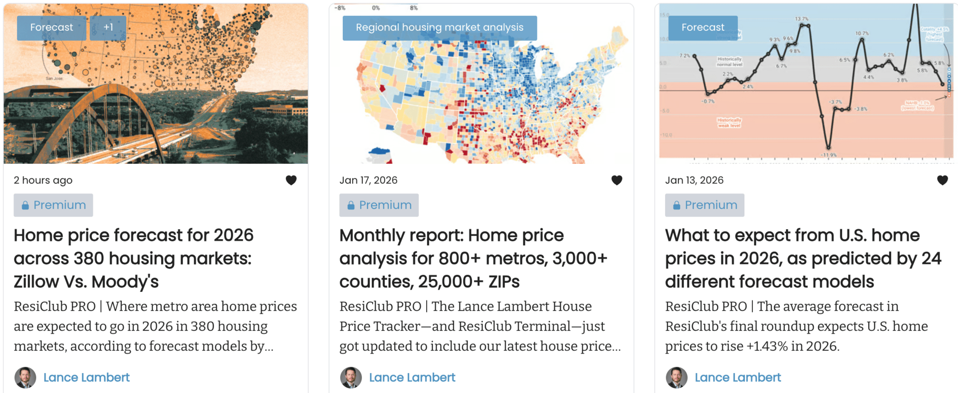 Over the past week, ResiClub members (paid tiers) got these 3 additional housing research articles: