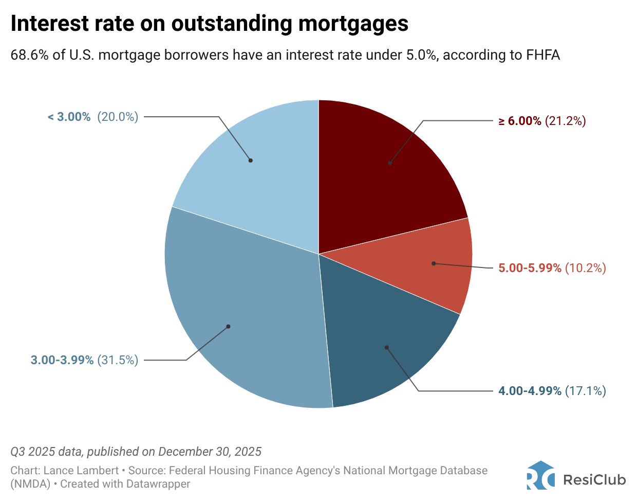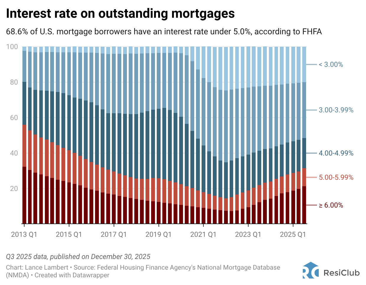 At the end of the last reported quarter, the share of U.S. mortgage borrowers with an interest rate over 6.0% has finally exceeded the share of U.S. mortgage borrowers with an interest rate below 3.0%.