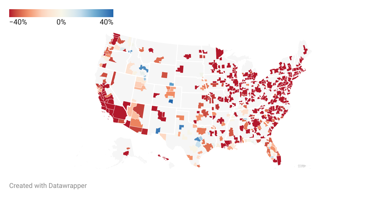 If you click the image below, you’ll be taken to a link where you can view an interactive map showing the inventory change between Sept. 2019 and Sept. 2023 in America’s 400 largest regional housing markets.