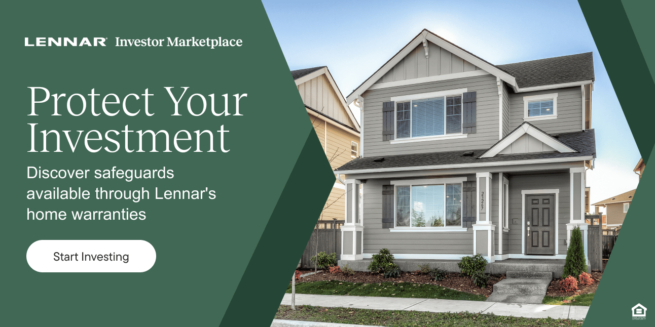 Join today to explore warranty-covered new homes from Lennar Investor Marketplace.