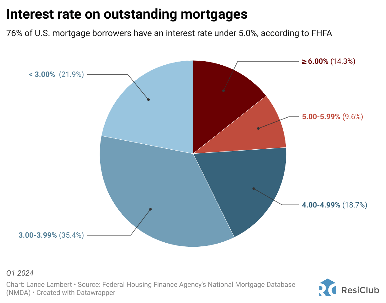 Among U.S. homeowners who have a mortgage, 76% have an interest rate below 5.0%.
