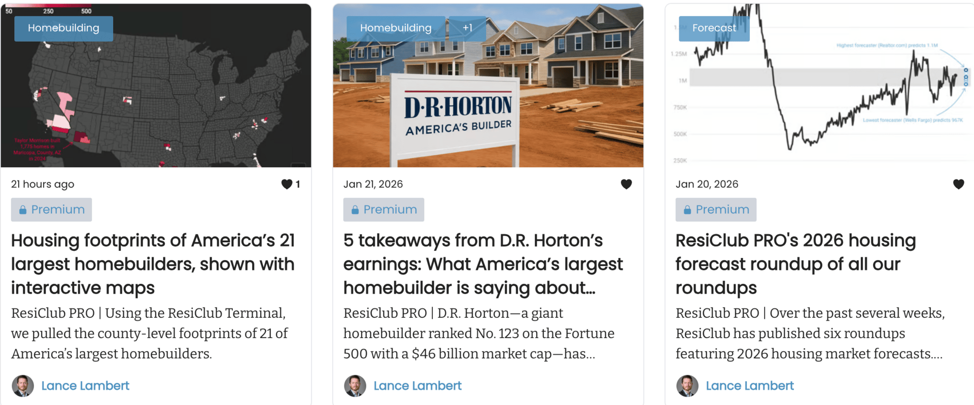 Over the past week, ResiClub members got these 3 additional housing research articles:
