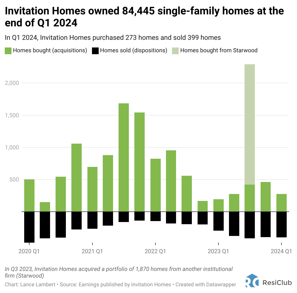 In Q1 2024, Invitation Homes—America's largest single-family landlord—purchased 273 homes and sold 399 homes.