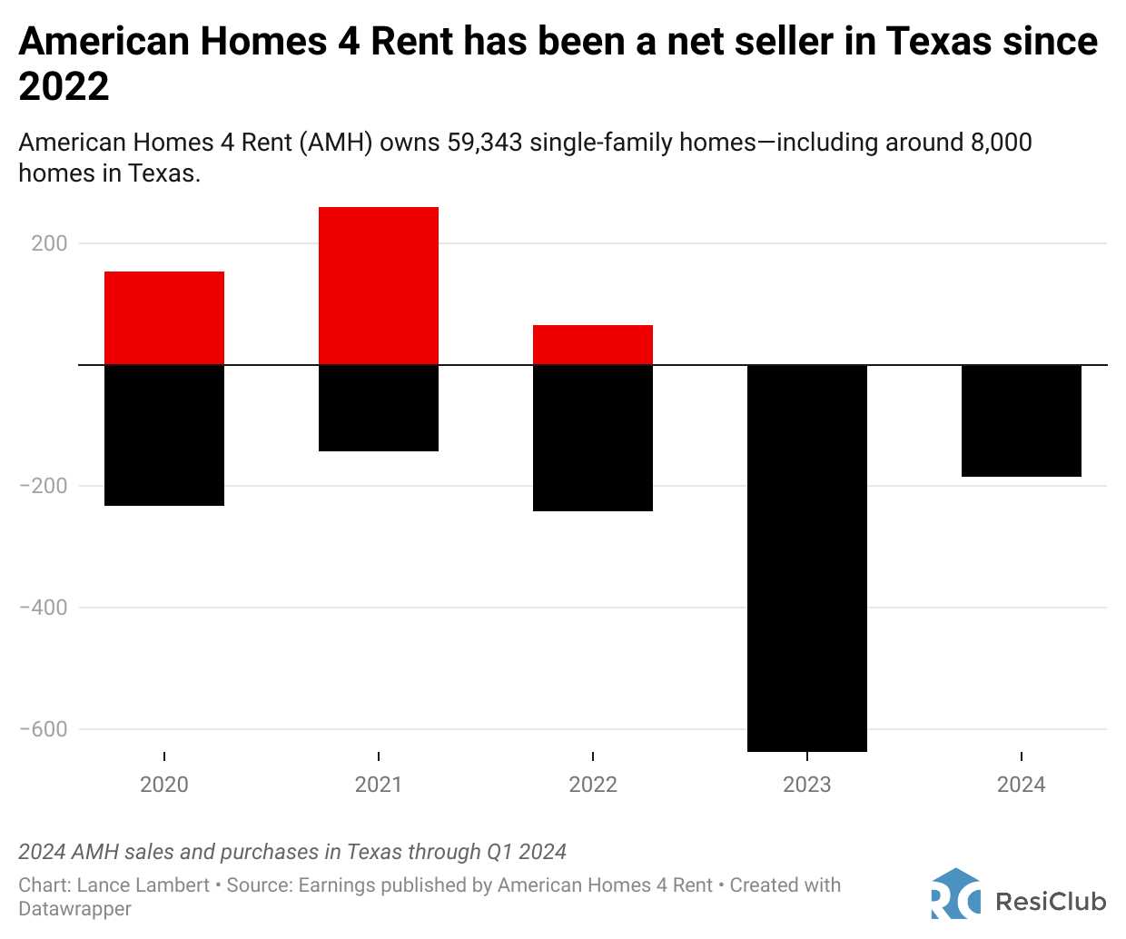 Indeed, in Texas, American Homes 4 Rent (AMH) purchased zero homes and sold off 185 homes in Q1 2024: