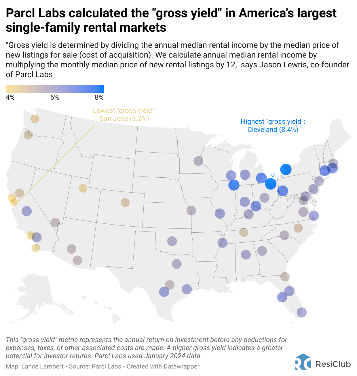 To find out which single-family housing markets have the highest and lowest yields, ResiClub reached out to the data pros at Parcl Labs, a fast-growing residential real estate analytics firm.