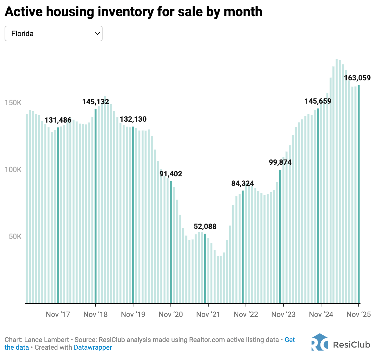ResiClub analyzed end of November 2025 inventory data just released from Realtor.com.
