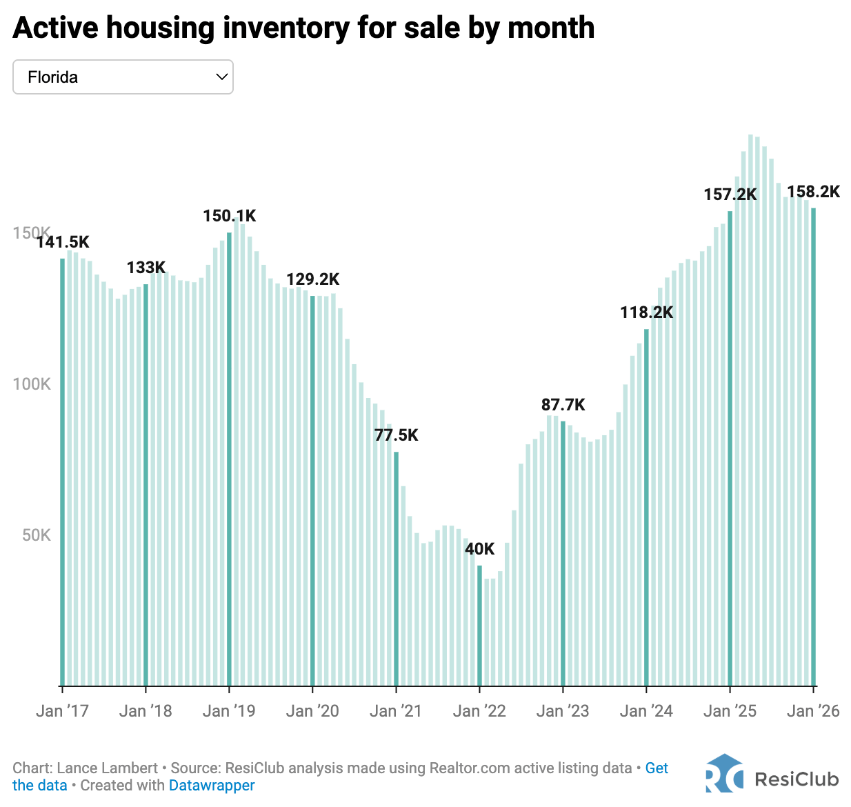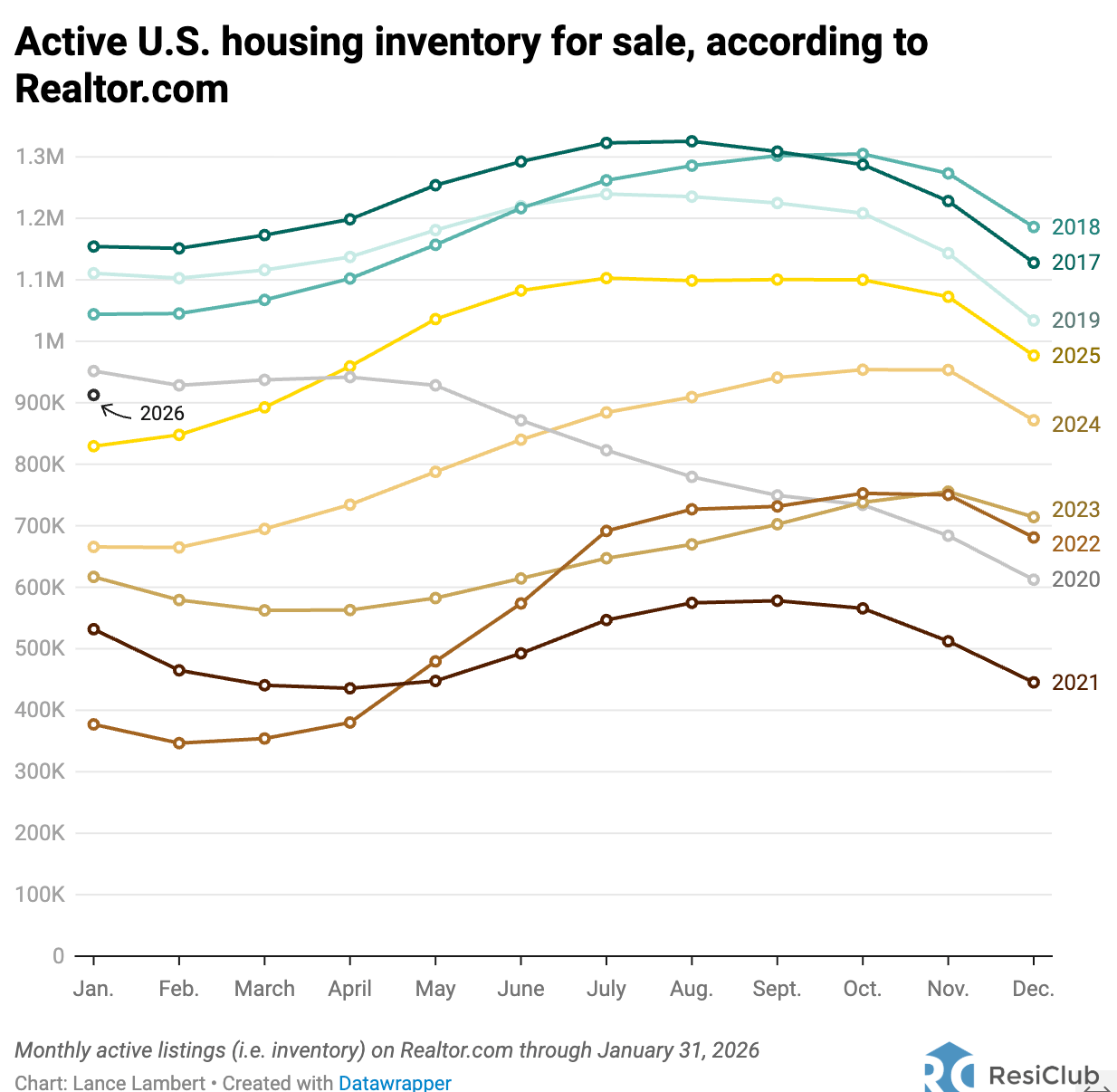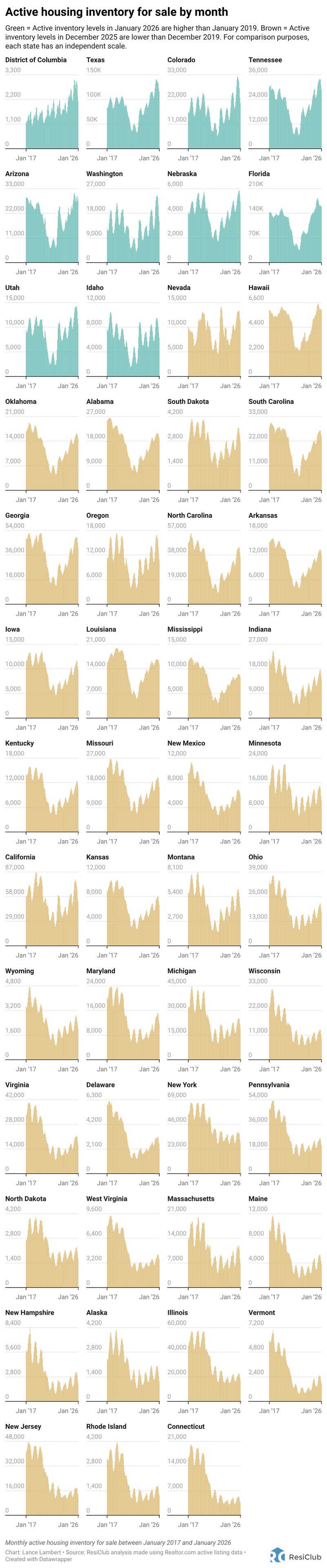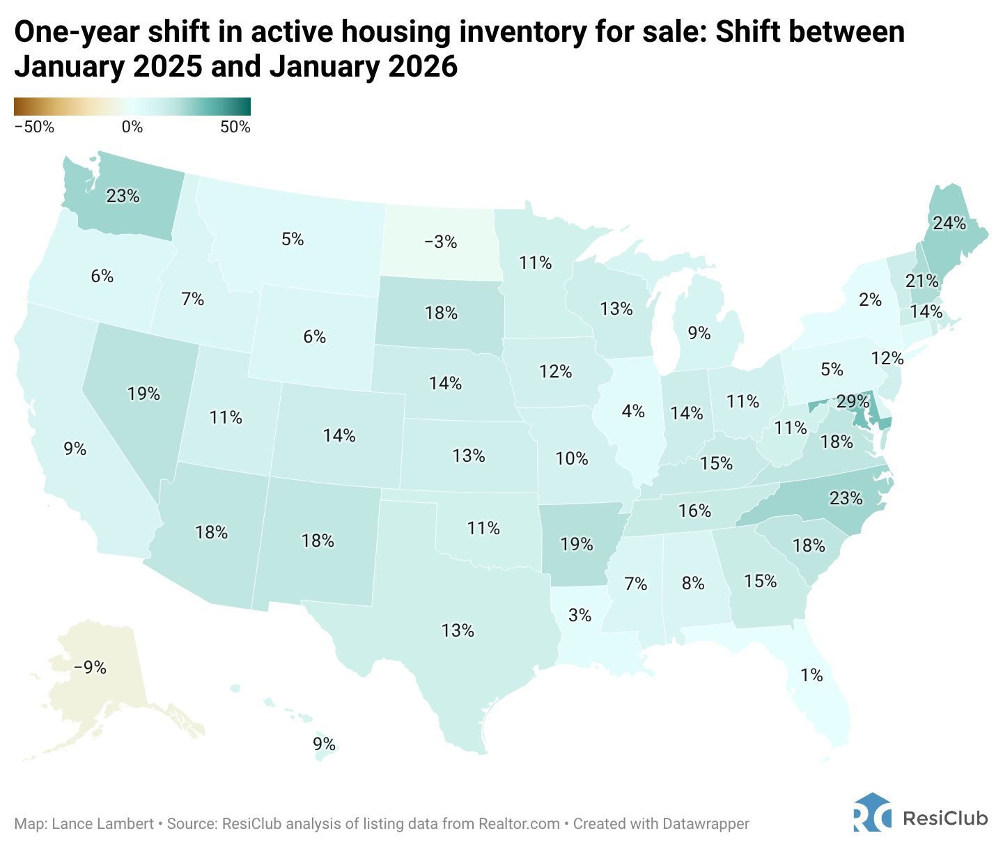 Right now, we’re looking at state inventory data. Tomorrow, ResiClub members (paid tiers) will get our monthly interactive deep dive analysis looking at inventory shifts and signals for over 800 metro areas, 3,000 counties, and 25,000 ZIP codes.