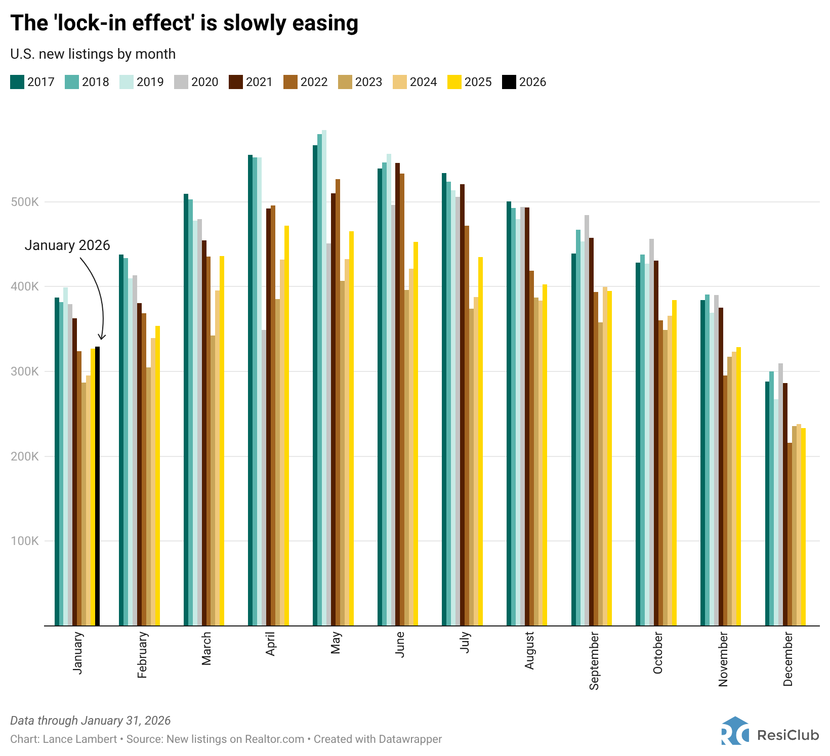 Look at the number of new listings in 2025—it’s higher than in 2023 and 2024. However, it hasn’t yet translated into a noticeable uptick in existing home sales.