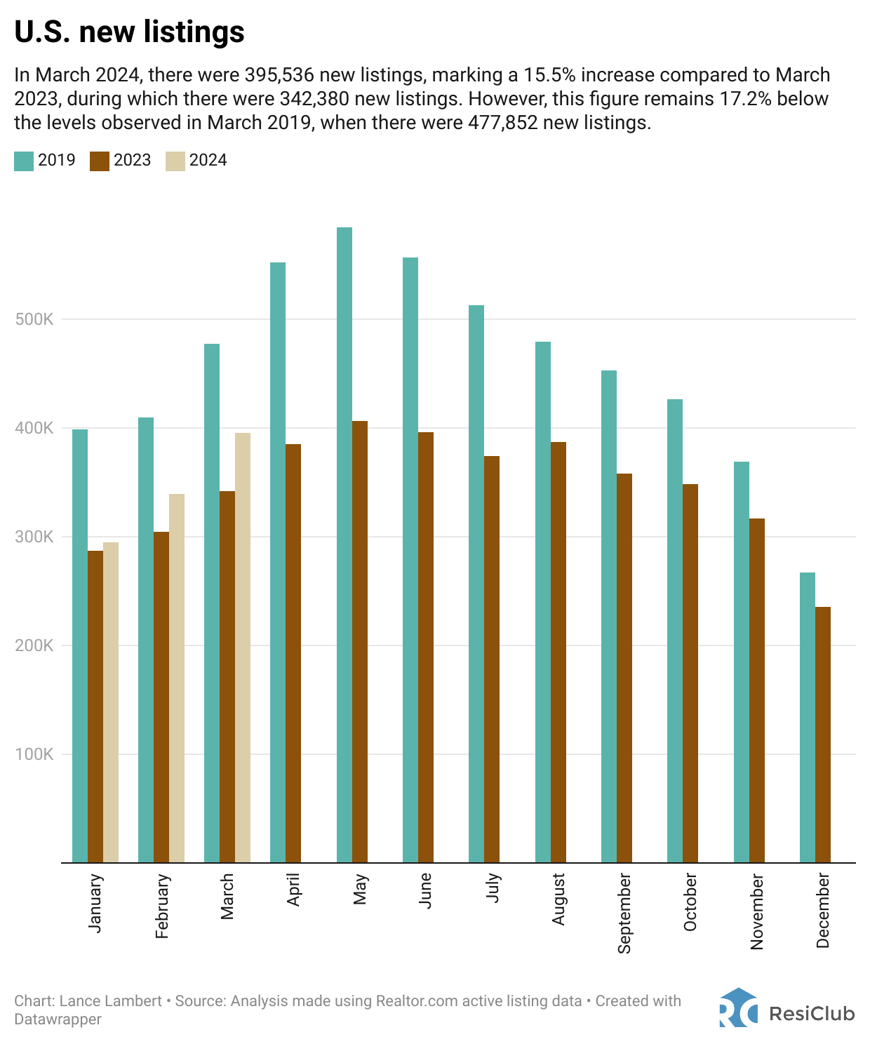 March new listings** total, according to Realtor.com
