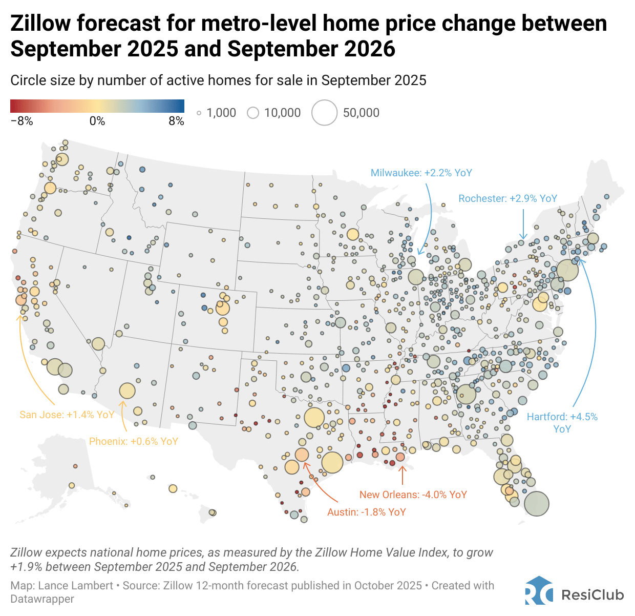 Zillow economists just published their updated 12-month forecast, projecting that U.S. home prices—as measured by the Zillow Home Value Index—will likely rise +1.9% between September 2025 and September 2026.